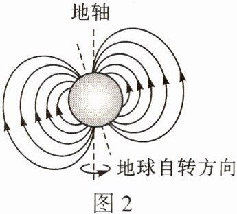 2. 地球周围地磁场的磁感线分布如图 2 所示。地磁场的磁感线