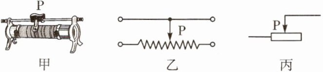 1.构造:如图甲所示,主要由绝缘管、支架、金属杆、滑片$P$和电阻丝等构成。结构示意图和元件符号分别如图乙、丙所示。