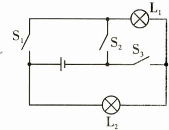 )A.当只闭合开关$S_1$、$S_3$时,灯$L_1$、$L_2$并联