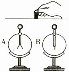 13.如图所示,取两个相同的验电器A和B,使A带负电,B不带电,用带有绝缘手柄的金属棒把A和B连接起来。下列说法正确的是(