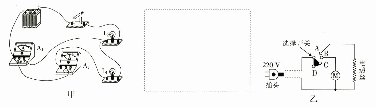 17.(1)请在图甲上改动导线,使两个电流表分别测干路和支路的电流,并在虚线框中画出改正后的电路图。(要求:在需改动的导线上画“×”,用笔将改动后的导线画出,导线不许交叉)