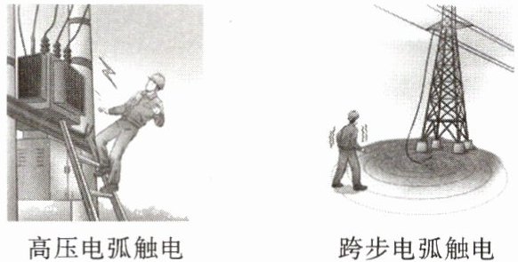 (2)高压触电:分为高压电弧触电和跨步电压触电两种。