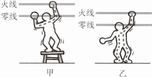 触电(如图乙)两种。(2)高压触电:分为高压电弧触电和跨步电压触电两种。