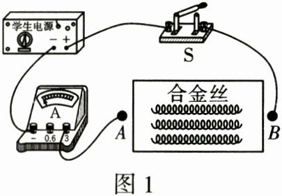 【证据】器材有:开关、电流表、电源(电压U恒为1.5V)各一个,三根完全相同的合金电阻丝,导线若干,实验电路如图1所示。实验中将合金电阻丝以下表中的方式分别接入电路A、B之间,闭合开关后进行实验,记录和计算的相关数据如下表所示: