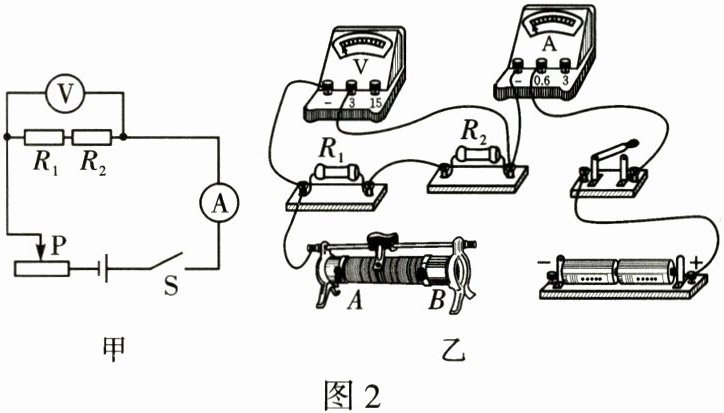 (3)根据电路图,用笔画线代替导线,将图2乙中的电路连接完整,要求滑片向左移动时电流表的示数变小。
