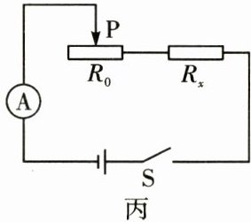 【拓展】如果没有电压表,电源电压未知,小明设计了如图丙所示的电路,用最大阻值为$R_{0}$的滑动变阻器来测量电阻$R_x$的阻值,实验步骤如下: