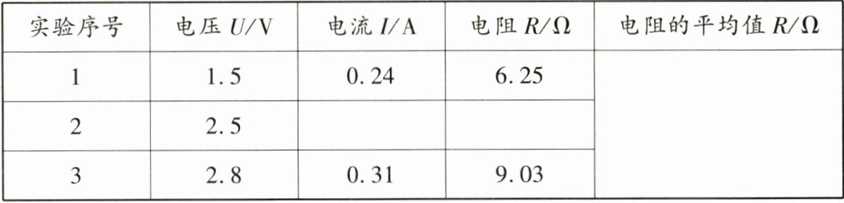 $\Omega$(结果保留两位小数)。小明设计的表格存在的问题是对电阻数据求平均值