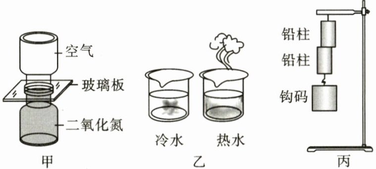 (3)丙图中,压紧两铅柱使它们合在一起,下面可以悬挂钩码,这说明固体分子间存在