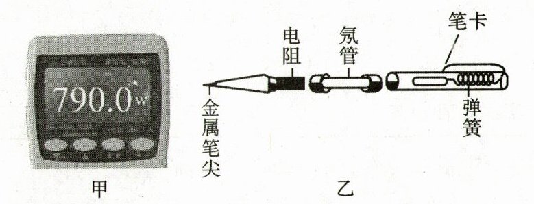 。(2)图乙是某测电笔的结构图,其外壳为透明绝缘体,安装时