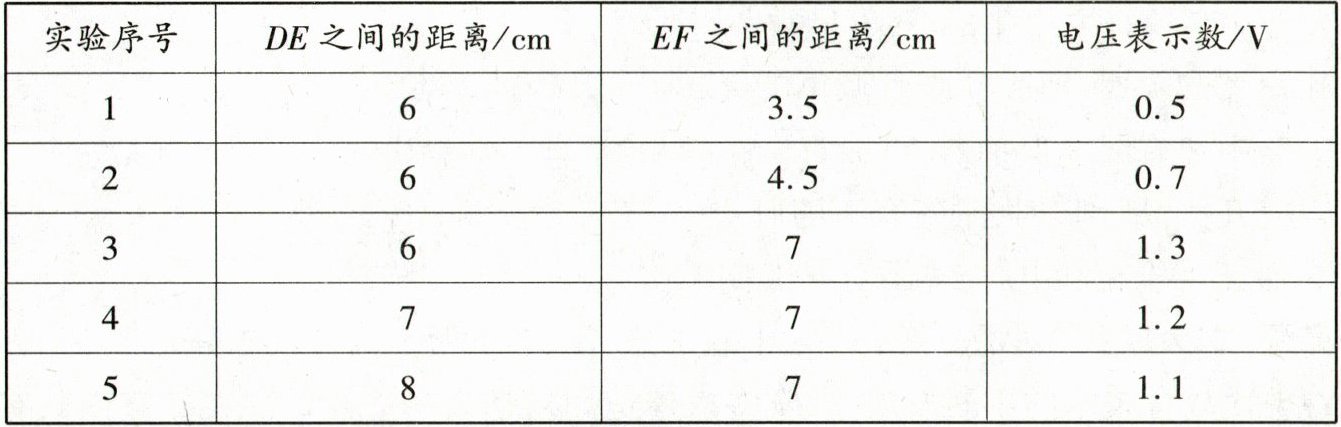 ②保持$DE$之间的距离不变,改变$EF$之间的距离,分别记录对应的电压表示数。