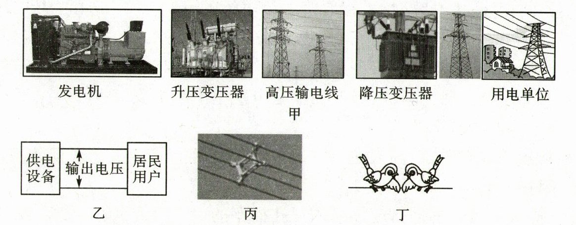 (5)如图丁所示,鸟儿落在$110\ kV$的高压输电线上,虽然通电的高压线是裸露电线,但鸟儿仍然安然无恙。这是因为