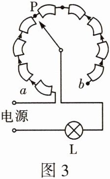 4. 图 3 为台灯上的“亮度”旋钮,它通过调节