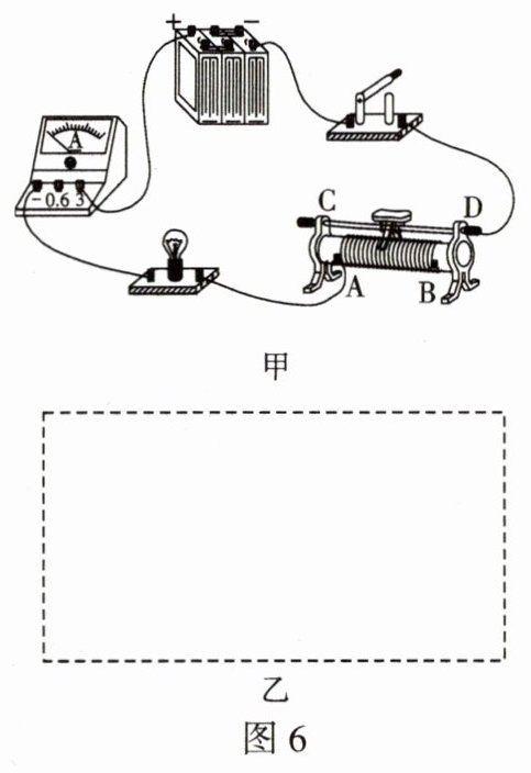 9. 在通过滑动变阻器改变灯泡亮度的实验中,同学们连接了如图 6 甲所示的电路。