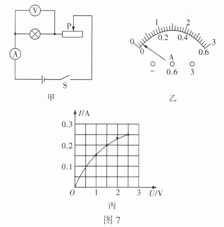 (4)分析丙图 7 丙可知:①小灯泡正常工作时的电流为