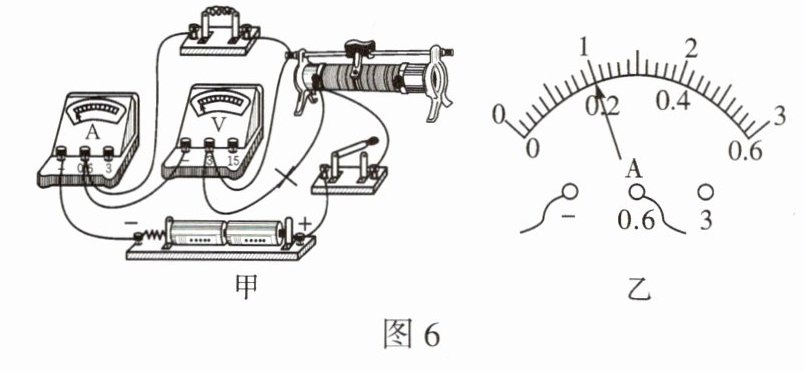6. 如图 6 甲所示,小聪设计了用“伏安法”测电阻的实验。