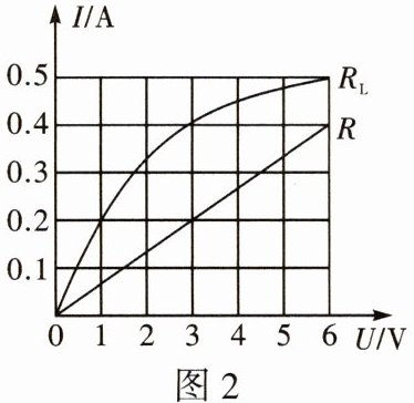 3.图2为灯泡L和定值电阻$R$的$I-U$图像,若将L和$R$并联在电源电压为