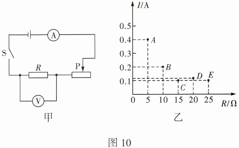 12.在“探究电流与电阻关系”的实验中,实验电路图如图10甲所示,其中电源电压恒为3 V,有五个定值电阻(5 Ω、10 Ω、15 Ω、20 Ω、25 Ω)和两个滑动变阻器R1(10 Ω 1 A)、R2(20 Ω 1 A)可供选择。