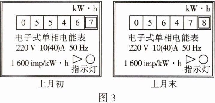 7.图 3 是小英家上月初和上月末电能表的示数。结合表盘上的信息可知,下列选项正确的是(