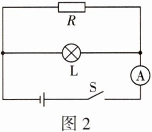 6.如图 2 所示的电路中,电源电压恒定,$R$为定值电阻,灯$L$标有“$6\mathrm{V}\quad3.6\mathrm{W}$”的字样,灯丝电阻不变。闭合开关$S$,灯泡正常发光,电流表的示数为$0.8\mathrm{A}$。求: