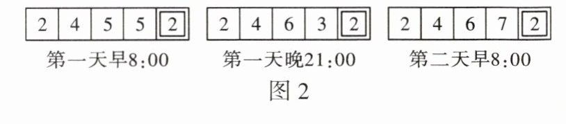 小曾留心观察了一下自家电能表,分别记录了他家第一天早 8:00、晚 21:00 和第二天早 8:00 这三个时刻的读数,如图 2 所示。他家这天应付电费