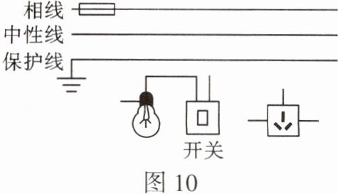 11. 请在遵守安全用电原则的前提下,用笔画线代替导线将图 10 中元器件分别正确地连入电路中(开关仅控制灯泡)。