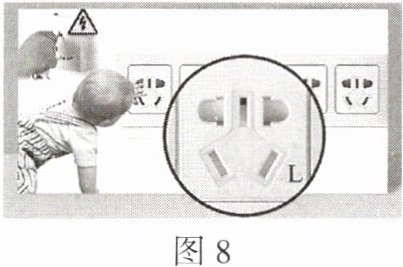 9. 跨学科 物理学与日常生活(多选)图 8 为“儿童安全插座”,它具有保护门双层互锁功能,能有效防止触电事故的发生。下列相关说法错误的是(