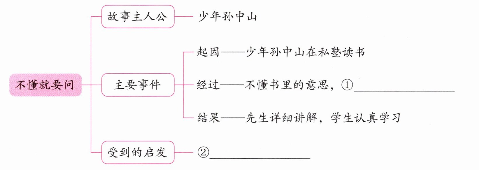 1.孙中山向先生询问读的那段书的意思 勤学好问 2.这样糊里糊涂地背,没有什么用。