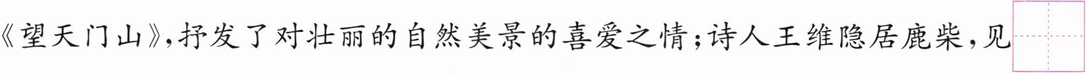 中华诗词魅力无穷。诗人____行至江,望两风光挥毫写下《望天门山》,抒发了对壮丽的自然美景的喜爱之情;诗人王维隐居鹿柴,见景照射青,