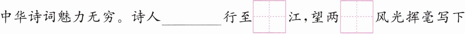 1. 小川在默写《望天门山》时,有两句诗不会写,请你帮他补充完整。
