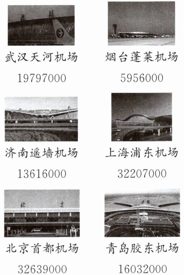 探究:下面是某年我国几个机场的旅客吞吐量(单位:人次)。你能把六个机场的旅客吞吐量从小到大排一排吗?