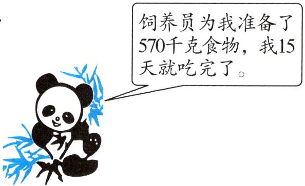 570÷15=38(千克) 38×30=1140(千克) 答:这只熊猫6月份一共要吃1140千克食物。