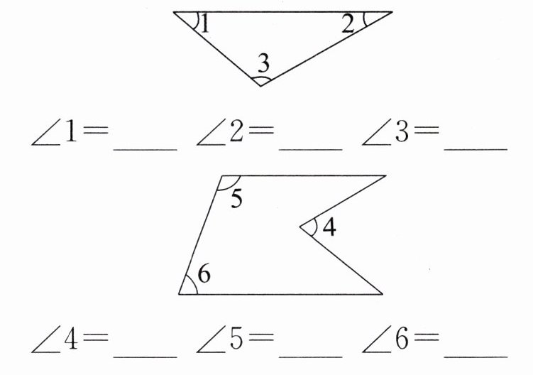 6. 量一量下图中各个角的度数,你能发现什么?
