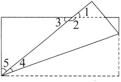 七、把一张长方形纸折成下图的形状,已知 $\angle 1 + \angle 2 + \angle 3 = 220^{\circ}$,$\angle 4 = 20^{\circ}$,求 $\angle 1$、$\angle 2$、$\angle 3$、$\angle 5$各是多少度。(13 分)