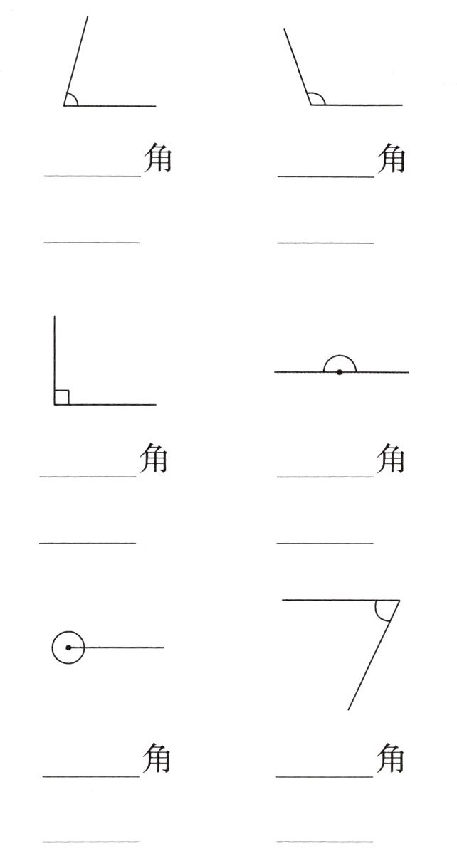 四、先判断下面的角各是哪一种角,再量出它们的度数。(12 分)