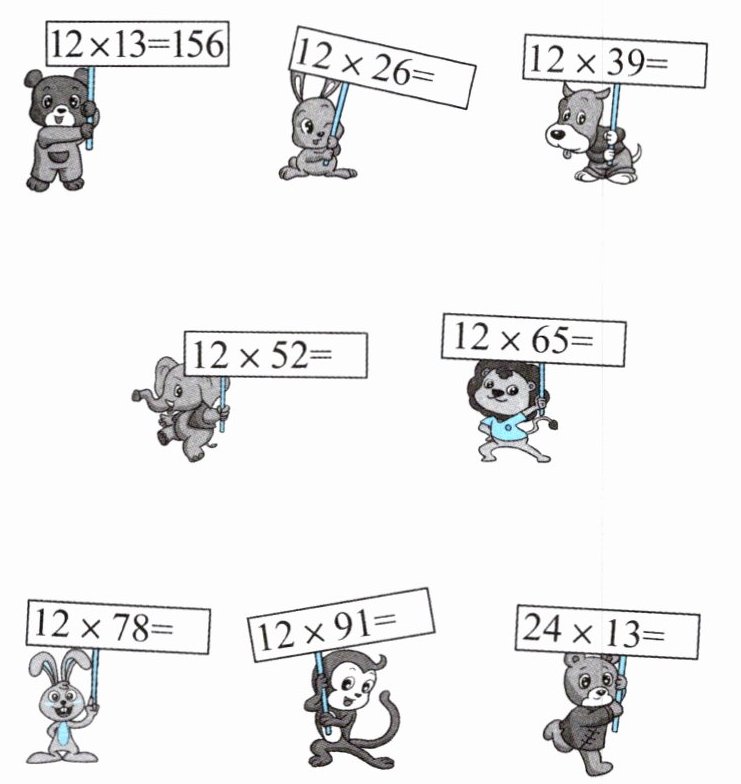 4. 根据第1个算式的积找规律,并写出其他算式的得数。