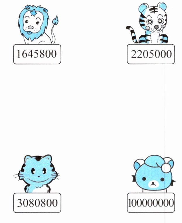 一百六十四万五千八百 二百二十万五千 三百零八万零八百 一亿