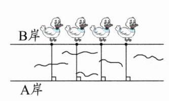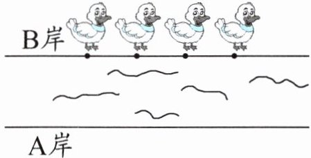 2. 小河的B岸和A岸是互相平行的,一群小鸭子从B岸游到A岸。