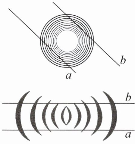 2. 观察一下,下面两组直线a、b平行吗?请你利用本课时发现的规律,动手检验一下。