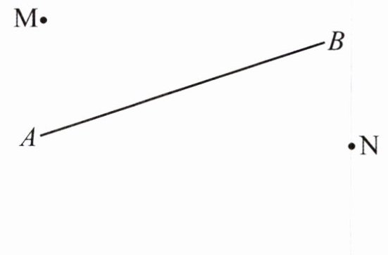 6. 下图中,一辆汽车在直线形的公路AB上由A向B行驶,M、N分别是位于公路AB两侧的村庄。当汽车从A出发向B行驶时,汽车行驶到哪里距离村庄M最近?行驶到哪里距离村庄N最近?请你在图中分别标出来。