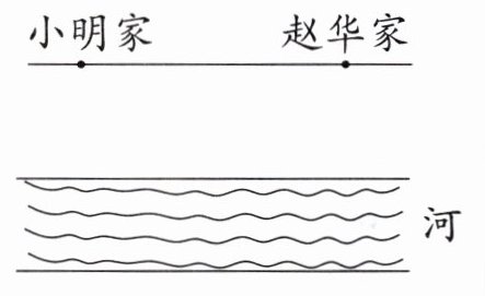 5. 小明家和赵华家都住在同一条与小河平行的街上(如图)。他们两家谁家离河近?为什么?