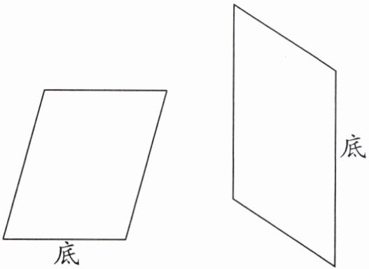 [插图1中两个平行四边形分别画出对应高的图示(实际作答时为手绘垂线,这里用文字描述)]