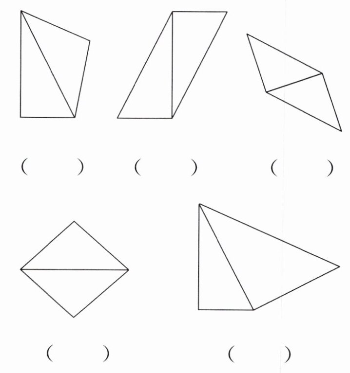 3. 在下面两个三角形拼成的图形中,哪些是平行四边形?在是平行四边形的下面画“√”。