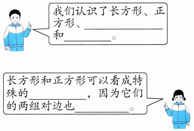 这些图形都只有______互相平行;我们把______平行的四边形叫作梯形。