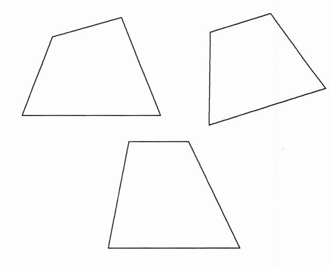 下面哪些图形是梯形?画出每个梯形的高,分别标出它们的上底、下底和腰。