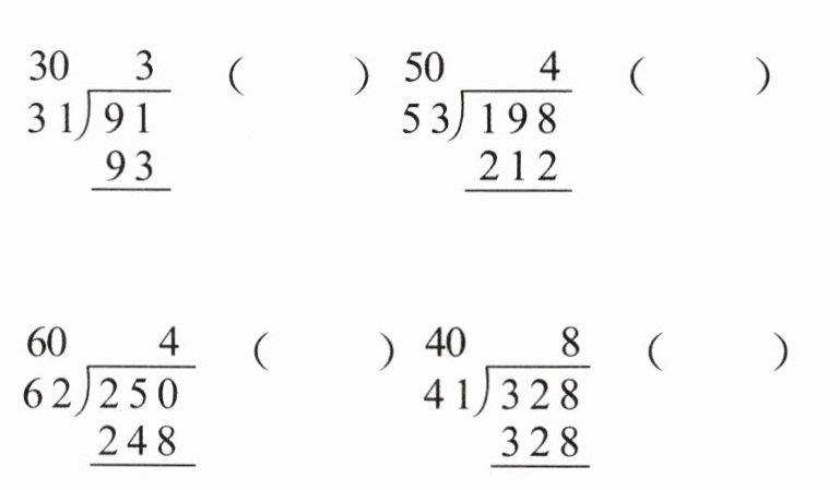 2. 根据试商的情况,快速说出准确商,填在( )里。