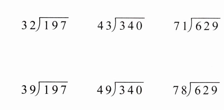 3. 先对下列式子试商,再思考:试商时,什么情况下商可能试大了? 什么情况下商可能试小了?