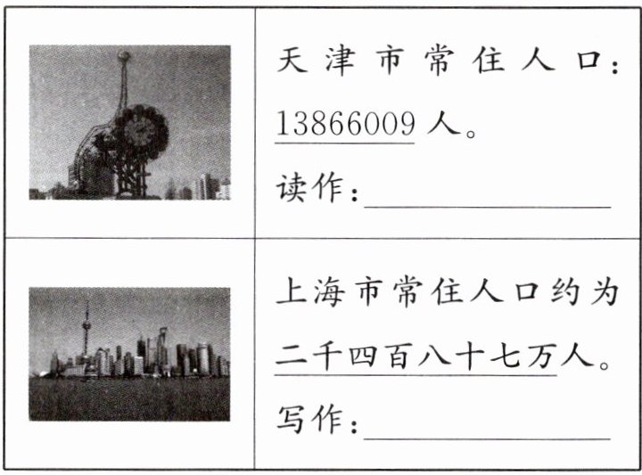 1. 下面是全国第七次人口普查的数据。请读出或写出横线上的数。