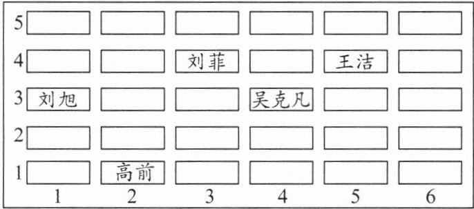 )找出相对应列和行的交点,交点就是所找的位置。现在请你在图上标出吴杰$(5,2)$,王明$(2,5)和徐泽(6,5)$的位置。