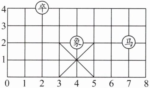 (1) 请你用数对分别表示图中棋子象和卒的位置。