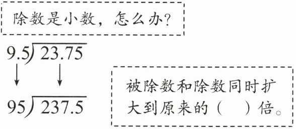 1. 想一想:求可以买多少千克葡萄,就是求 23.75 里有多少个 9.5,列式为____。